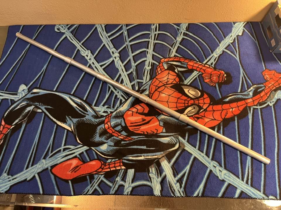 Gambit Bo staff based on the 2nd pic. Staff is 5' long, double silver carbon fiber grip, collapsible into 3 sections. Colors are silver carbon fiber wrap/ Dark Steel as shown in pics. I will work with you on color combinations of your choice. Staff is all silver with carbon fiber wraps for both grip sections.