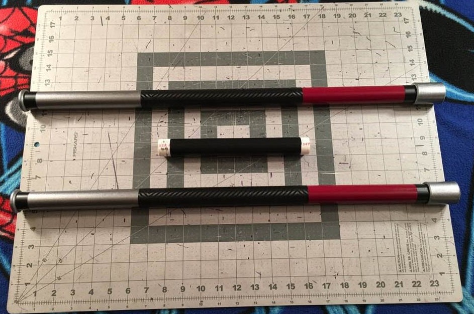 Azrael or Batman Beyond Bo staff based off those characters colors. Staff is 5' 5" long, leather grip, collapsible into 3 sections. Listing is for the staff only. Crimson Red/ Carbon fiber/ Dark Steel shown in profile pic. I will work with you on color combinations of your choice. The last 2 pics are for determining the size of the staff.