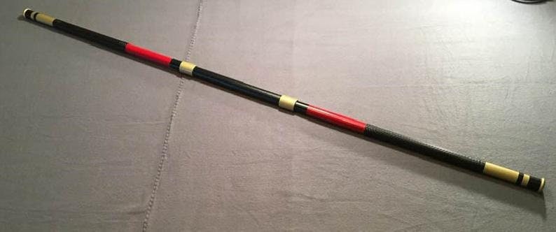 Red Robin 2 pieces set: Chest armor and matching Bo staff. Matte Black, Metallic Red and Pure Gold shown in pics. I will work with you on colors of your choice. Chest is professionally made out of industrial Ethylene-vinyl acetate foam, secured with industrial cement and binding post. It's extremely durable. Bird emblem is held on with binding post and industrial cement. It has adjustable straps that go over the shoulders and across the back to create a harness with a strap on each side with snap buckles that secure across your lower back for extra support. Comes in all sizes. Red Robin Bo staff 5' 5" long, leather grip, collapsible into 3 sections. I will work with you on color combinations of your choice and length. Feel free to message me with any questions.